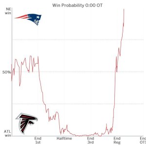 Tennis has unique scoring. Even if you win more points or more games you may not win the match. Scoring isn’t cumulative for the entire contest like most sports. Every point is not created equal. Therefore, it’s not just how many points you win but which points you win that usually separates winning and losing. Having the right mindset before you start your point is critical to success in tennis. This match charting shows the win probability as a game goes on. Just like the Patriots in Super Bowl LI against the Atlanta Falcons where their win probability fluctuated throughout the game and was anything but certain until the last play of the game, with the Pats winning 34-28. Tennis is the same way. When you are up, do what you did that got you there or put another way, “dance with the person who brought you to the dance.”